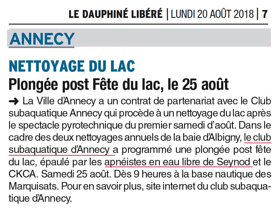 2018-08-20 DL CSA Eau Libre nettoyage lac Annecy Publié le 20 août 2018 dans Revue de pressePleine résolution (910 × 712) ← Précédent Suivant →
